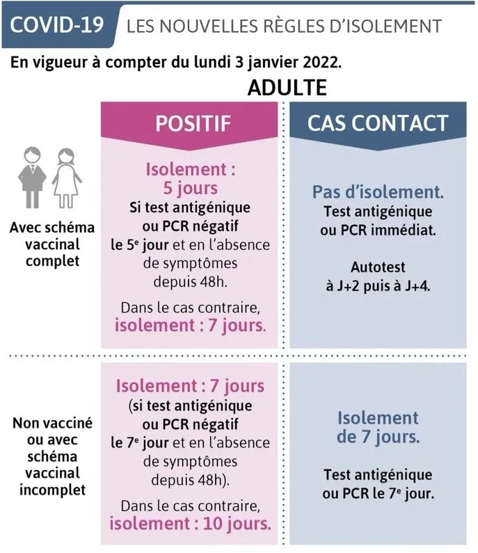 Voici un résumé des nouvelles règles et mesures gouvernementales concernant le monde du travail, valables à partir de lundi 3 janvier 2022 suite à l’allocution du Premier Ministre, Jean Castex et du Ministre de la Santé Olivier Véran. Ces nouvelles mesures tendent à enrayer la vague du variant Omicron, tout en allégeant les règles d’isolement pour les personnes bénéficiant d’un schéma vaccinal complet.
